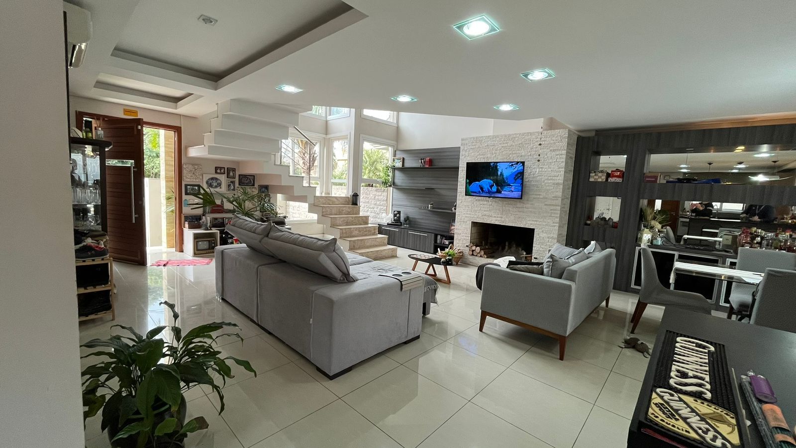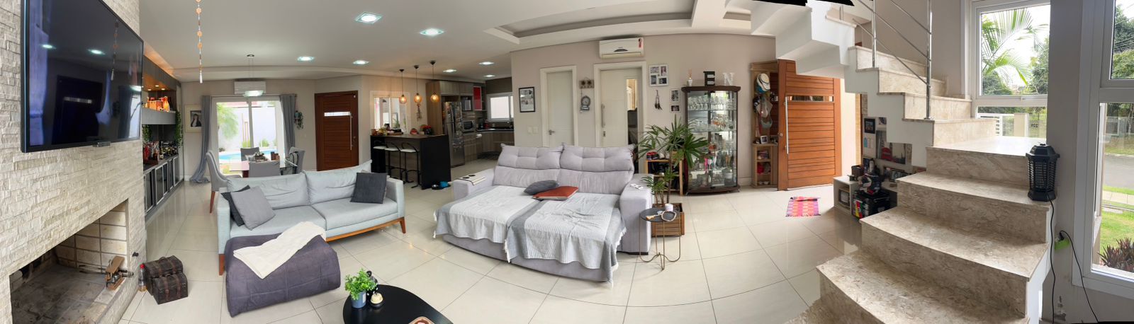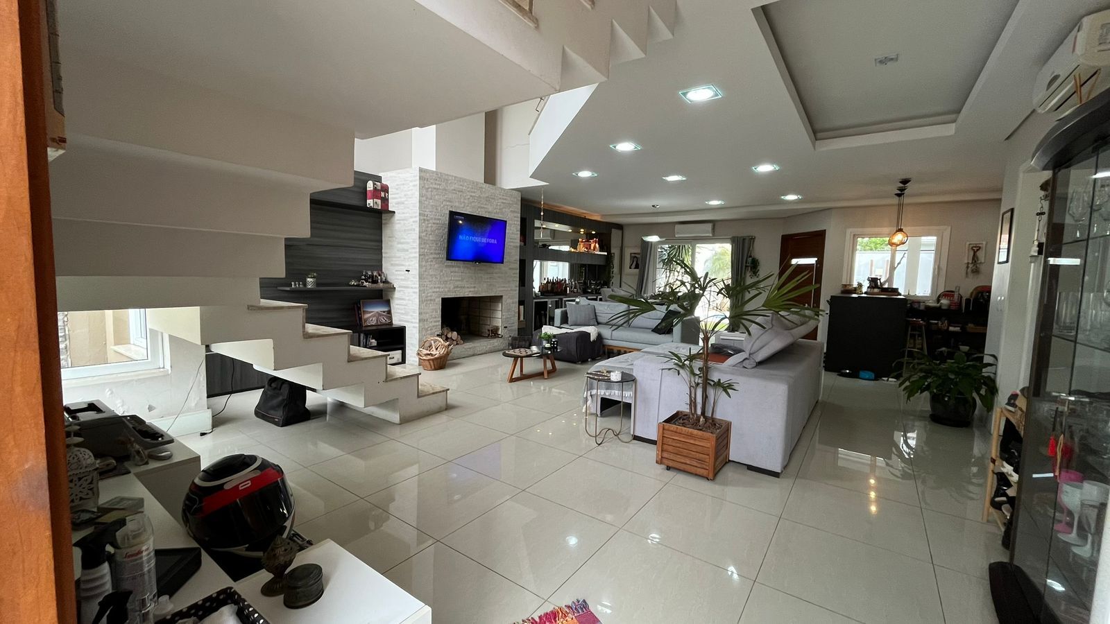 Casa Alto padrão com três dormitórios, todos são suíte com closet, ar condicionado e sacada. Sala de estar, de jantar e cozinha amplas e conjugadas e mobiliadas. Garagem para dois carros dentro e dois no pátio. Lavabo e banheiro na área de lazer, totalizando 5 banheiros na casa. Despensa de cozinha e despensa de utensílios auxiliar na área de lazer. Suíte do casal possui também um escritório. A casa tem Jardim de inverno. Piscina com entrada para aquecedor e cascata. Áquecedor a gás e ar condicionados nos quartos e sala. Ampla área de lazer com churrasqueira e espaço gourmet. Mezanino e ampla Lareira de 2m. Total de 279m2